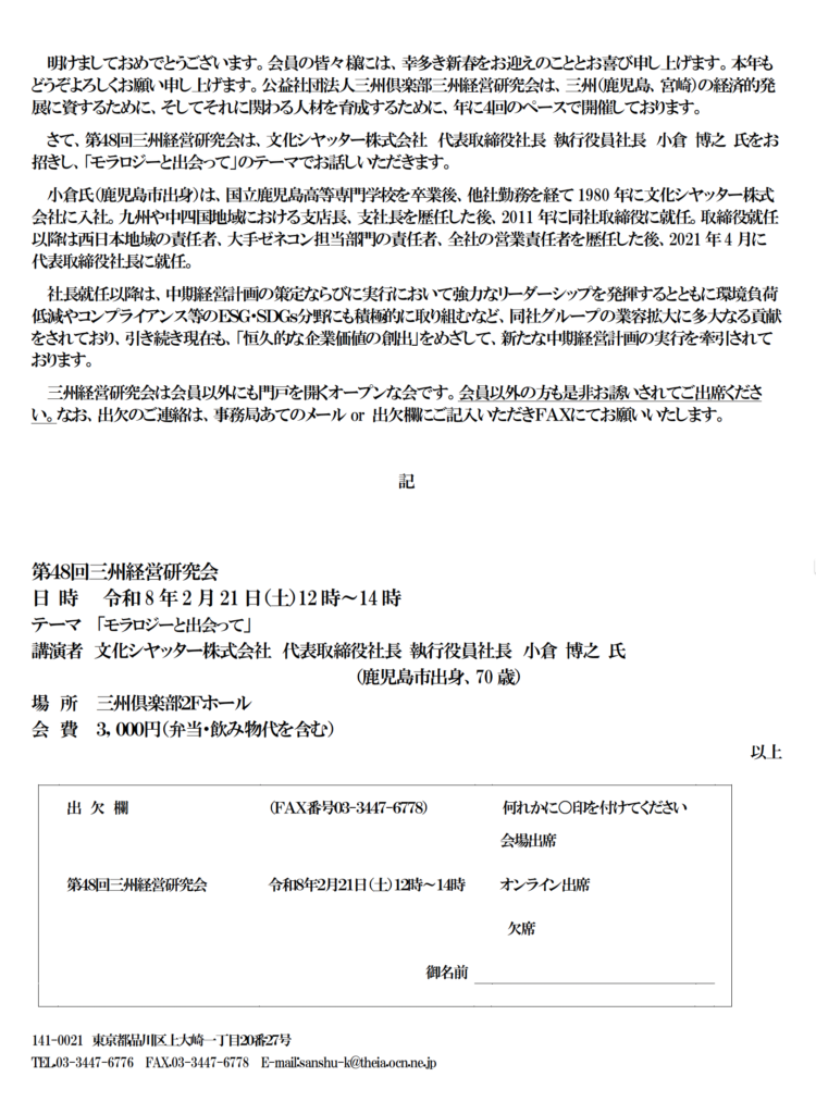 第48回三州経営研究会のご案内[令和8年2月21日(土)]