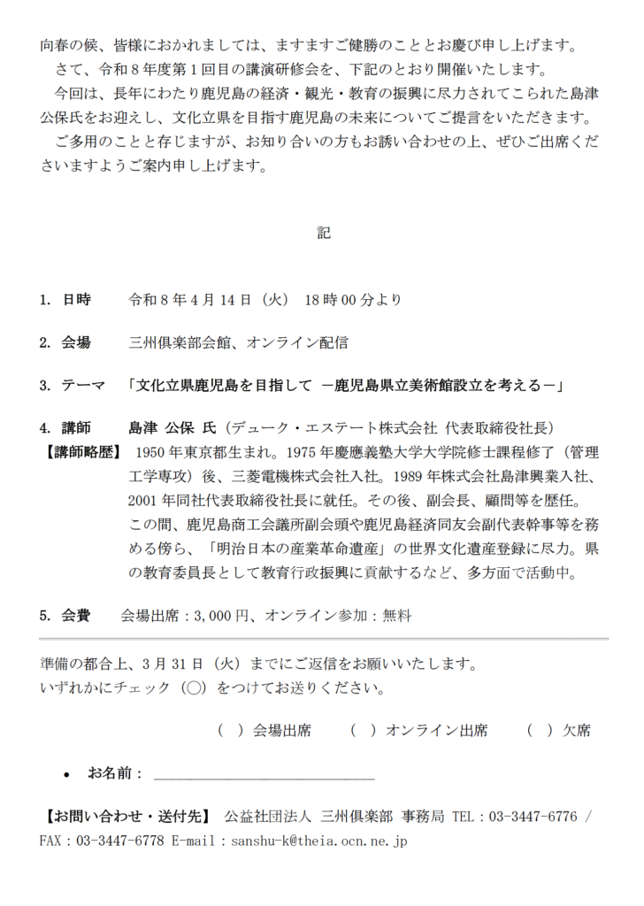 令和8年度 第1回 講演研修会のご案内[令和8年4月14日(火)]