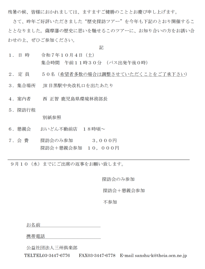 第2回薩摩藩ゆかりの地歴史探訪ツアーのご案内[令和7年10月4日(土)]
